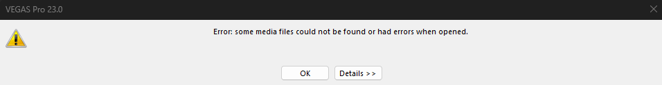 Du hast hier ne 5.1 Audioquelle (statt Stereo). Ich bin mir ziemlich sicher, dass du die so nicht benutzen willst. Ob sich Vegas (je nach Projekteinstellungen) daran verschluckt, kann ich nicht sagen. (Vielleicht funktioniert in Vegas Audioeinstellung den Master Bus Mode auf 5.1 Surround zu stellen, aber erwarte dafür keinen Support hier. Wie gesagt der meistverwendete Modus ist „no audio“.)